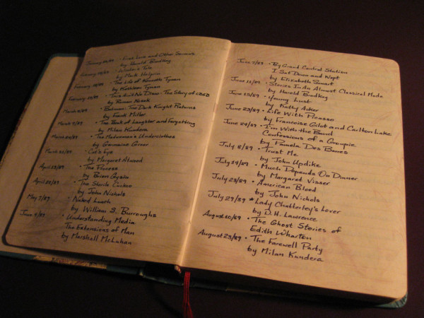 … and on it goes from there. (Click on the picture accompanying this post to glimpse a couple of pages from 1989.) My only regret is that I didn’t start keeping a Book of Books sooner.